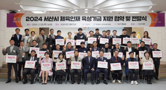 [뉴스서울] 충남 서산시가 28일 시청 대회의실에서 충청남도서산교육지원청, 서산시체육회와 2024년 체육인재육성기금지원 협약 및 전달식을 가졌다고 밝혔다.