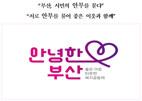한편, 시는 좋은 이웃과 함께 살기 좋은 복지공동체를 지향하는 브랜드 '안녕한 부산'을 지난해 10월 발표하고, 다양한 브랜딩을 추진해 시민 행복과 삶의 질 향상을 위해 적극 노력하고 있다.