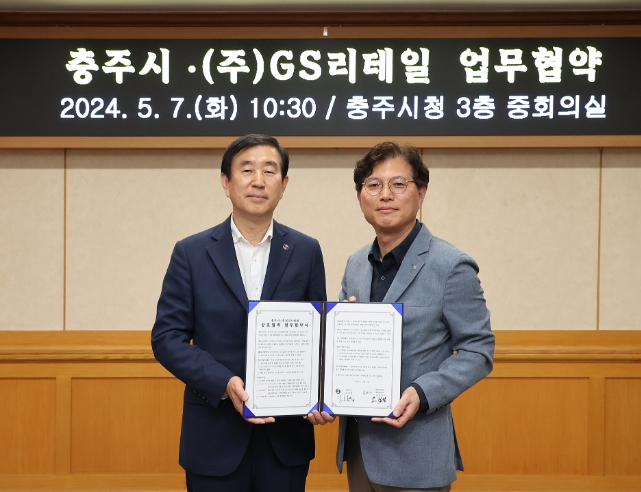 ▲ 충주시-GS리테일, 협업 상품개발을 위한 상호 협력 MOU 체결 |