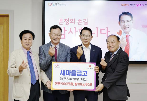 [뉴스서울] 충남 서산시는 22일 서산새마을금고, 서산중앙새마을금고, 대산새마을금고 등 새마을금고 3개 지점에서 어려운 이웃을 위한 성금 900만 원과 쌀 80포(200만 원 상당)를 기탁했다고 밝혔다.