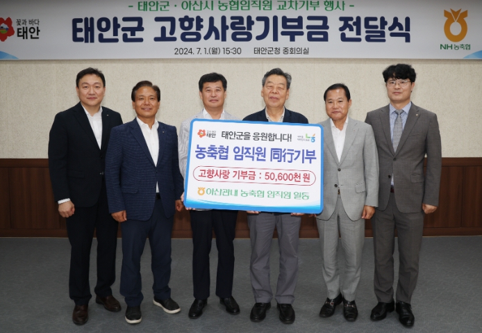 농협 아산시지부 신진식 지부장은 “지난해부터 시작된 고향사랑기부제가 지역 발전에 큰 보탬이 된다고 보고 임직원들과 함께 상호 기부에 뜻을 모았다”며 “더욱 비상하는 태안군을 아산시민들도 함께 응원하겠다”고 말했다.