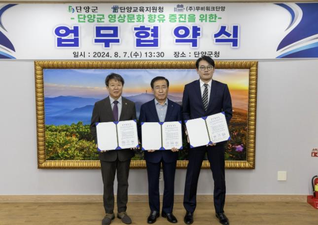 [뉴스서울] 충북 단양군과 단양교육지원청, ㈜무비워크단양은 지난 7일 단양군 영상문화 향유 증진을 위해 업무협약을 체결했다.