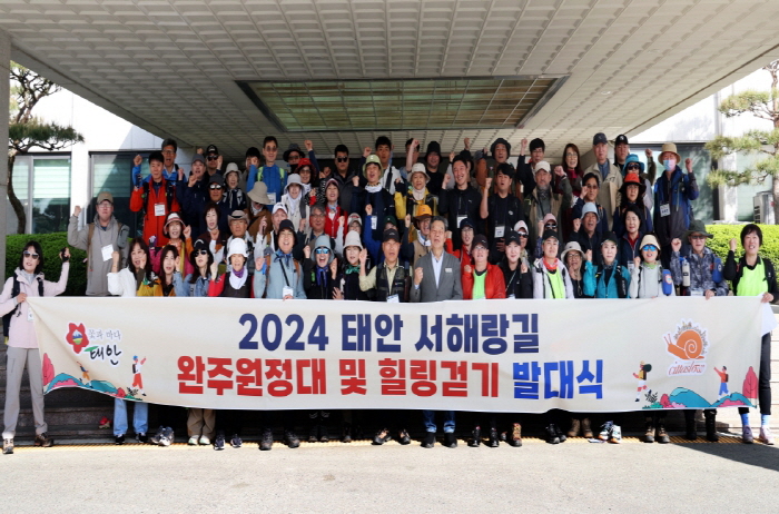 태안군은 27일 군청 대강당에서 가세로 군수와 완주원정대 및 힐링걷기 참가자 등 90여 명이 참석한 가운데 ‘2024 태안 서해랑길(코리아둘레길) 완주원정대 및 힐링걷기 발대식’을 개최했다고 밝혔다.