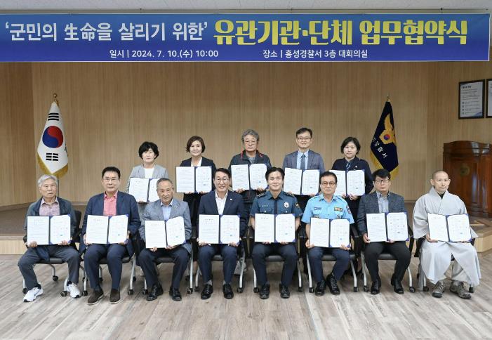 [뉴스서울] 홍성군과 홍성경찰서가 군민의 생명을 지키기 위해 손잡았다. 양 기관은 지난 10일 홍성지역 13개 유관기관 및 단체와 함께 교통안전 증진을 위한 업무협약을 체결했다.