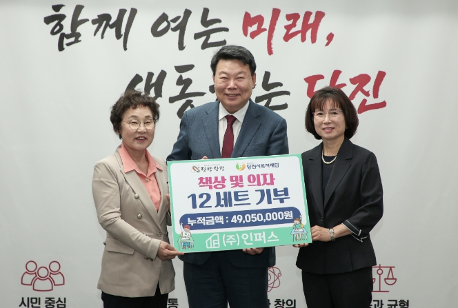 [뉴스서울] 당진시에 있는 사무용 가구 업체 ㈜인퍼스는 28일 학습환경이 열악한 지역 내 아동들에게 전달해 달라며 책상․의자 12세트를 당진시 드림스타트에 기부했다.