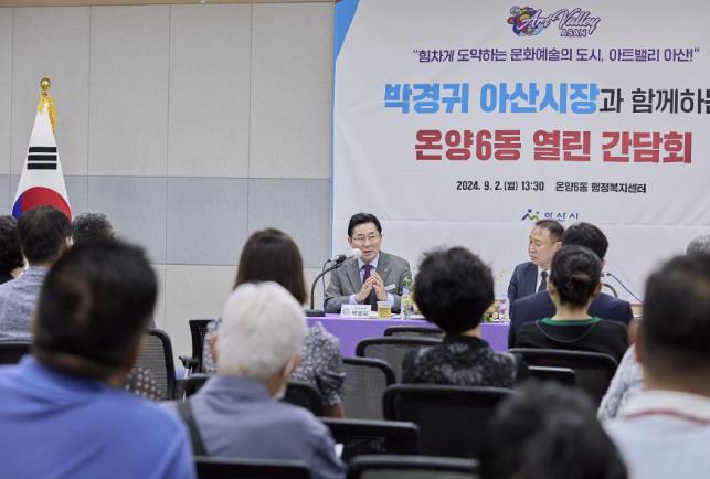[뉴스서울] 박경귀 아산시장과 온양6동 주민들의 ‘2024 상반기 열린간담회’가 2일 온양6동 행정복지센터 2층 대회의실에서 열렸다.