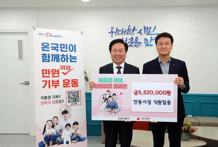 | ▲ 안동시청 직원 일동, 저출생 극복 성금모금 캠페인 성금 552만원 기부 |