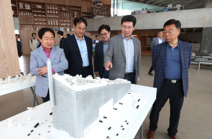 | ▲ 아마게르 바케 친환경 소각장 모형을 둘러보고 있는 전국대도시시장협의회 시장단. |