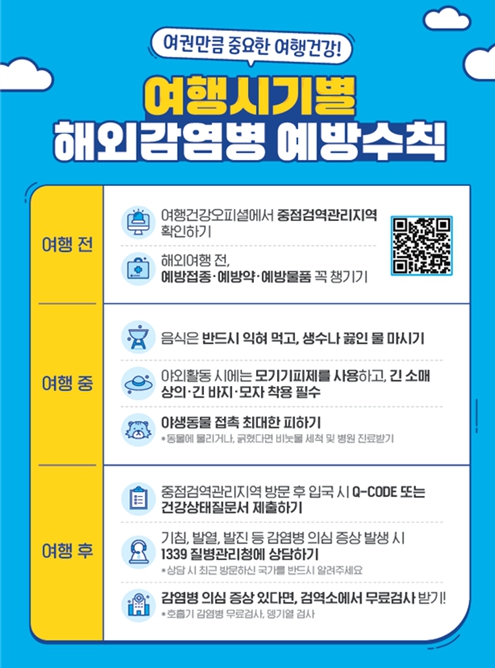 한편, 해외유입감염병 예방과 확산 차단을 위해 질병관리청은 올해(2026년) 1분기 중점검염관리지역 24개국을 지정·발표했으며, 해당국가(지역) 체류·경유자는 큐코드(Q-CODE) 또는 건강상태질문서를 제출해야 한다.