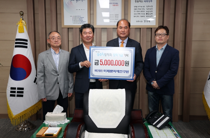 [뉴스서울] 재단법인 미래문화재연구원에서는 15일 상주시청을 방문하여 지역의 우수한 인재 육성을 위해 써달라며 상주시장학회에 장학금 500만 원을 기탁했다.