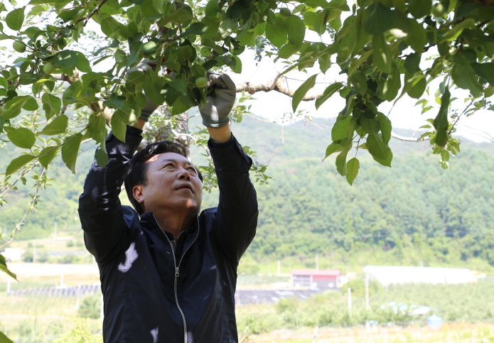 [뉴스서울] 권기창 안동시장은 5월 29일 북후면 두산리 소재 사과농가를 방문해, 사과적과 일손돕기에 나섰다. 이날 농촌일손돕기는 안동시청과 NH농협은행 안동시지부(지부장 이광현) 직원들이 함께했다.