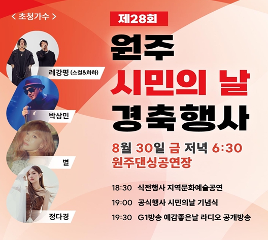 [뉴스서울] 원주시는 오는 30일 오후 6시 30분부터 원주댄싱공연장에서 ‘제28회 원주시민의 날’ 경축행사를 개최한다.