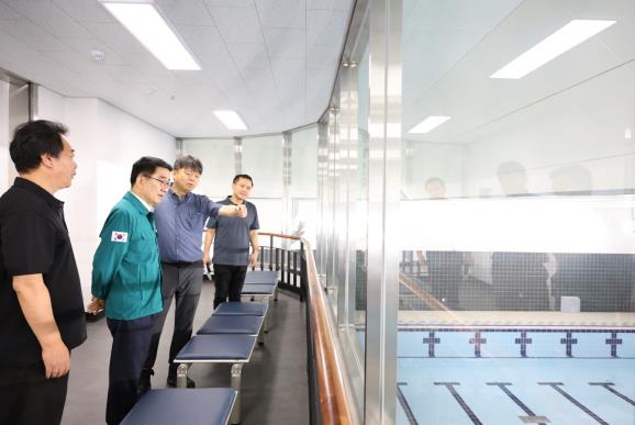 ▲ 문헌일 구로구청장이 지난 7월 1일 구로구민체육센터 재개관을 앞두고 현장에 방문했다. |