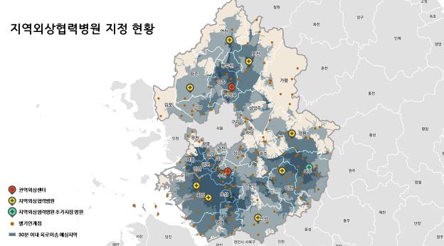 | ▲ 지역외상협력병원 현황 지도 |