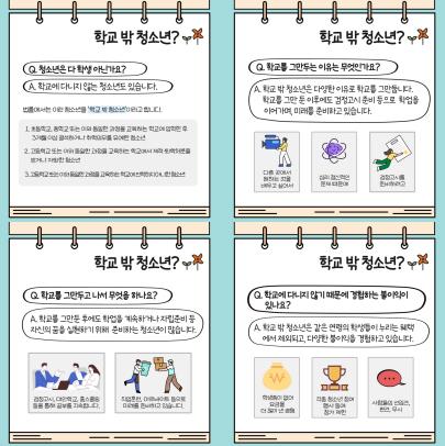 먼저 청소년 권리침해 사례와 메시지를 담은 카드뉴스를 제작해 시군·공공기관·청소년 관계기관에 배포했다. 각 기관은 19일 누리집과 SNS 등을 통해 카드뉴스를 공유함으로써 학교 밖 청소년들에 대한 공감대를 넓혔다.