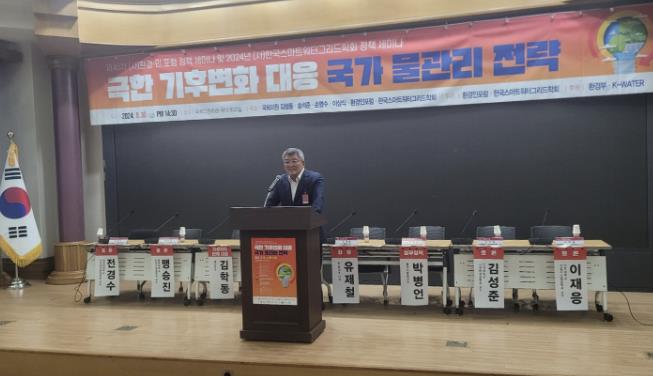 이번 정책 세미나는 ‘극한 기후변화 대응을 위한 신규댐 건설의 전략과 도전’을 주제로 진행됐으며 김형동 국회의원(환경노동위원회), 송석준 국회의원(법제사법위원회), 환경ㆍ인 포럼 심재곤 회장, 한국스마트워터그리드학회 우달식 회장 등이 참석했다.