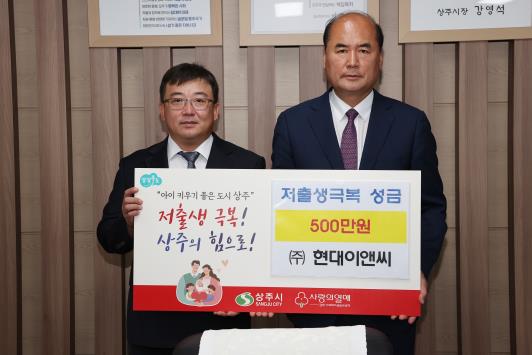 ㈜현대이앤씨의 이두희 대표는 “상주시에 많은 관심을 가지고 이번 저출생 극복 성금 기탁을 결심하게 됐다.”며, “상주가 저출생을 극복하여 더욱 건강한 지역이 되는 데 도움이 되길 바란다.”고 기부의 뜻을 밝혔다.