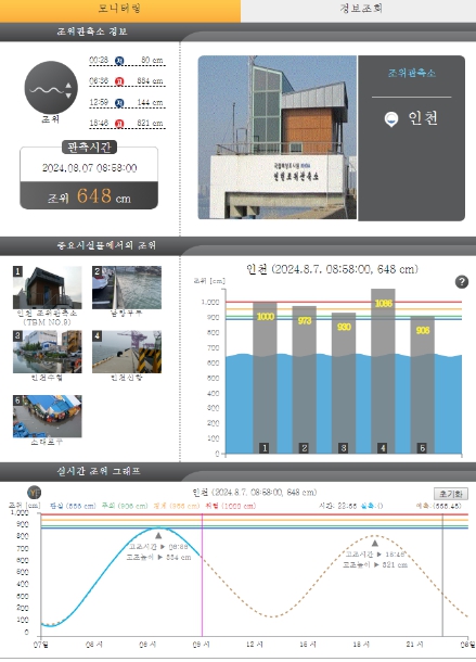 ▲ 실시간 고조정보 서비스 화면(누리집) |