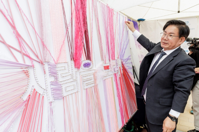 ▲ 지난해 '사람을 보라' 축제에 참석해 실공예 작품을 관람하는 박강수 마포구청장 |