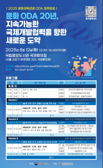 [뉴스서울] 문화체육관광부는 한국문화관광연구원과 함께 8월 12일(화) 오후, 국립중앙도서관에서 문화 공적개발원조(ODA) 20주년을 맞이해 ‘지속 가능한 국제개발협력을 향한 새로운 도약’을 주제로 ‘2025 문화·체육·관광 공적개발원조(ODA) 정책 포럼’을 개최한다.