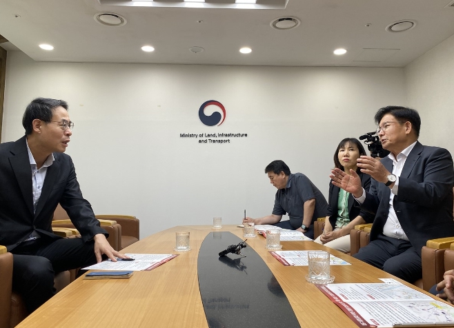 ▲ 지난해 박강수 마포구청장이 강희업 대도시권광역교통위원회 위원장을 만나 DMC역 추가 설치를 촉구했다 |