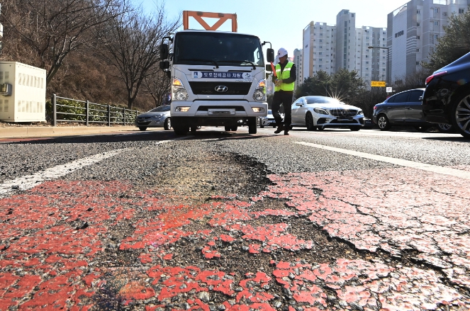 ‘도로 위 지뢰’로 불리는 포트홀은 도로가 파손돼 움푹 파인 것을 말한다. 차량이 포트홀 위를 빠른 속도로 지나가면 핸들이 틀어지거나 타이어가 손상돼 사고로 이어질 수도 있다. 수원시 포트홀 발생 건수는 2021년 3167건, 2022년 3738건, 2023년 6391 건으로 꾸준히 증가하는 추세다.