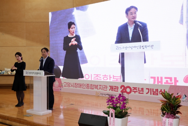 이동환 고양시장은 “고양시장애인종합복지관의 개관 20주년을 진심으로 축하한다”며 “서로 다른 사람들이 함께 어우러져 살 수 있는 세상을 향해 고양시장애인종합복지관이 앞장서 주시기를 바란다”고 당부했다. 이어 “고양특례시 또한 편견 없는 사회, 배리어 프리를 만들어가기 위해 노력하겠다”라고 밝혔다.