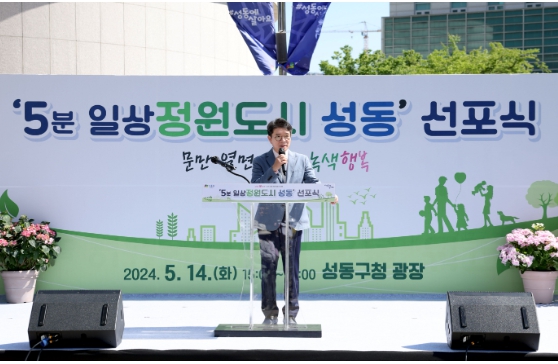 [뉴스서울] 서울 성동구가 지난 14일 성동구청 앞 광장에서 주민 450명과 함께 ‘5분 일상정원도시 성동’ 선포식을 개최했다.