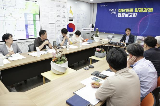 ▲ 집단민원 미결과제 집중보고회에서 진행사항 파악 중인 이동환 고양특례시장 |