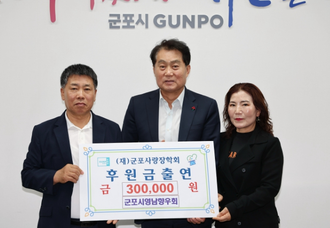 군포시 영남향우회는 30만원의 장학금을 기탁하였고 호남향우회는 지난해에 100만원의 장학금을 기탁한데 이어 올해에도 100만원을 지역 꿈나무를 위해 나눔을 펼쳤다.