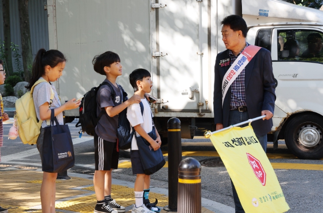 작년에 이어 올해도 교통봉사에 나선 하은호 군포시장은 ‘안전한 통학로 만들기 캠페인’과 ‘교통봉사’를 통해 학생, 학부모, 지역주민과 두루 소통하는 시간을 가졌다.