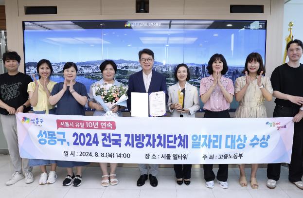 [뉴스서울] 서울 성동구가 ‘2024년 전국 지방자치단체 일자리대상’에서 서울시 자치구 중 유일하게 10년 연속 일자리대상을 수상하는 쾌거를 이뤘다.
