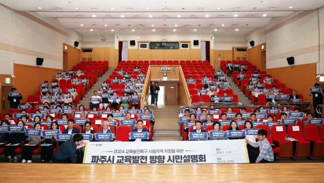 이날 설명회에는 150여 명의 시민들이 참석했으며, ‘파주시 교육발전특구 지정의 필요성 및 교육발전 방향’을 주제로 한 공주교대 전제상 교수의 특별강연이 펼쳐졌다. 특히 ‘2024 교육발전특구 시범지역 지정 2차 공모’를 준비 중인 파주시는 이 자리에서 특구 운영기획(안)을 공개해 시민들의 호응을 이끌었다.