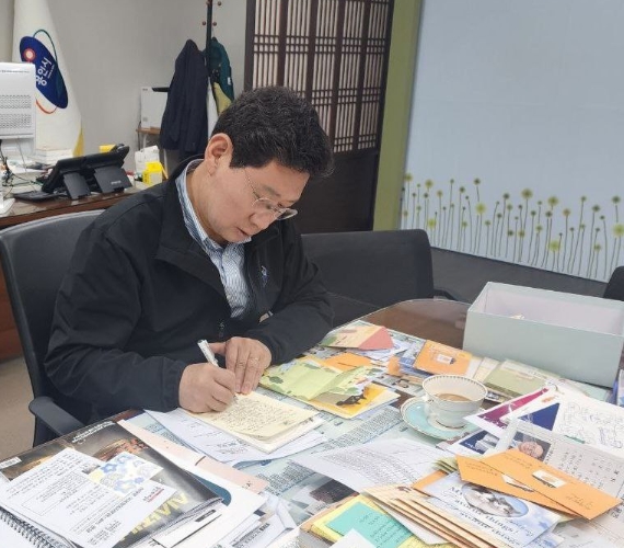 | ▲ 이상일 용인특례시장이 용인성산초 학생들에게 일일이 손편지로 답장을 작성하고 있다 |