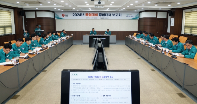 군은 지난 5일 군청 중회의실에서 가세로 군수를 비롯해 부군수와 실·국장, 부서장, 읍·면장 등 26명이 참석한 가운데 ‘2024년 폭염대비 종합대책 보고회’를 갖고 각 부서별 폭염대비 대응책을 점검했다고 밝혔다.