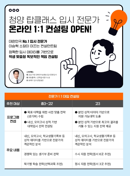 ▲ 청양 탑클래스 성공하는 1:1 온라인 입시컨설팅 제공 |