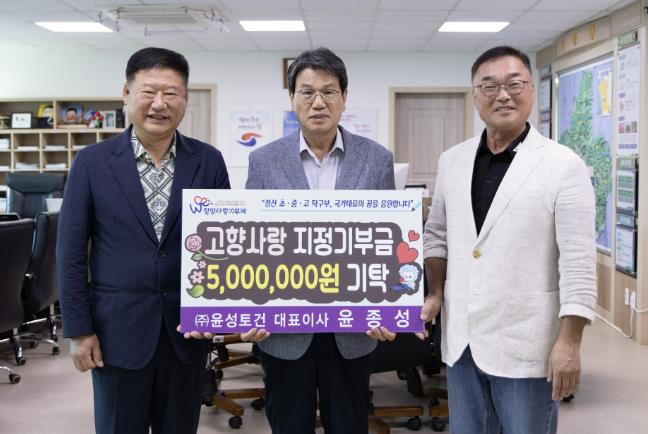 [뉴스서울] 청양군은 윤종성가 지난 17일 고향사랑e음을 통해 정산 탁구부에 5백만 원을 지정기부하고 19일 군을 방문하여 기탁식 행사를 가졌다고 밝혔다.