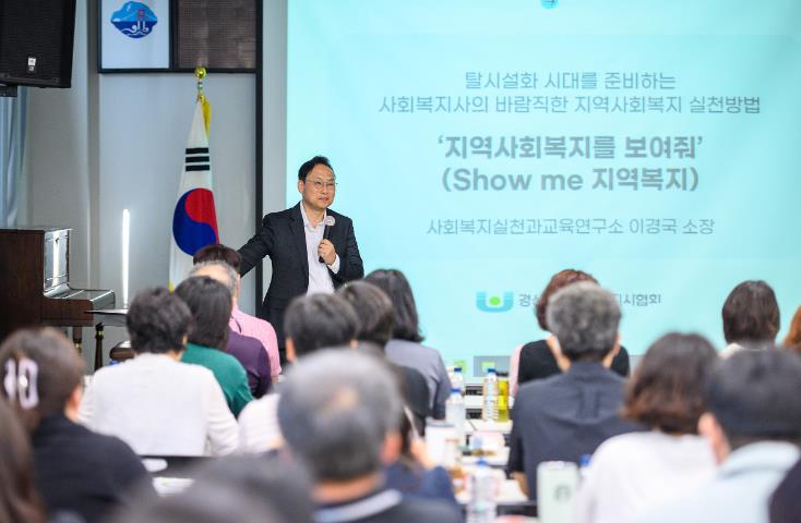 이번 교육에서는 사회복지실천과교육연구소 이경국 소장이 ‘탈시설화를 준비하는 사회복지사의 바람직한 지역복지실천방법’이라는 주제로 강의를 했다.