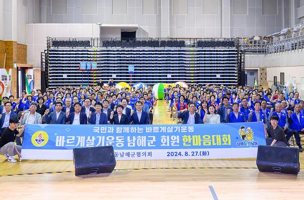 [뉴스서울] 바르게살기운동 남해군협의회는 지난 27일 남해문화센터에서 회원 300여 명이 참석한 가운데 회원한마음대회 및 모범가정 시상식을 개최했다.