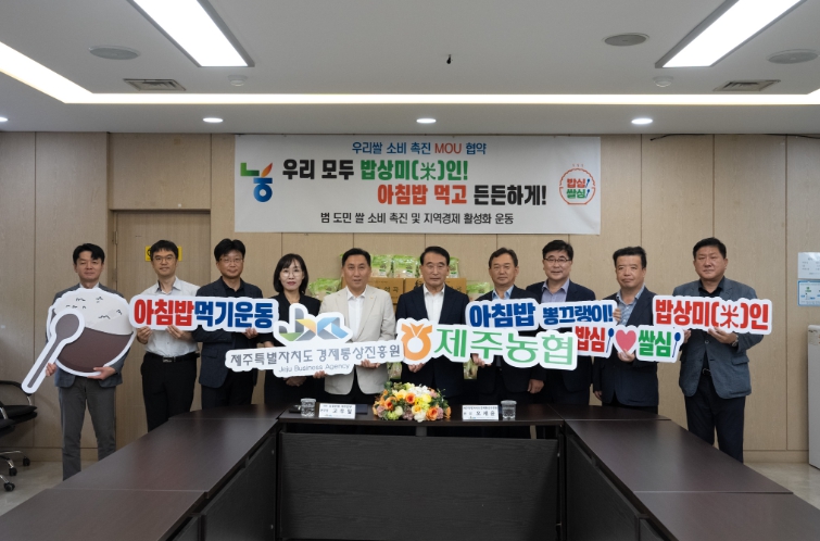 [뉴스서울] 지난 21일 제주특별자치도 경제통상진흥원(원장 오재윤)과 NH농협은행 제주본부(본부장 고우일)는 제주도 지역경제 활성화와 아침밥 먹기 생활화를 통한 건강한 식습관 조성을 위한 업무협약을 체결했다고 밝혔다.