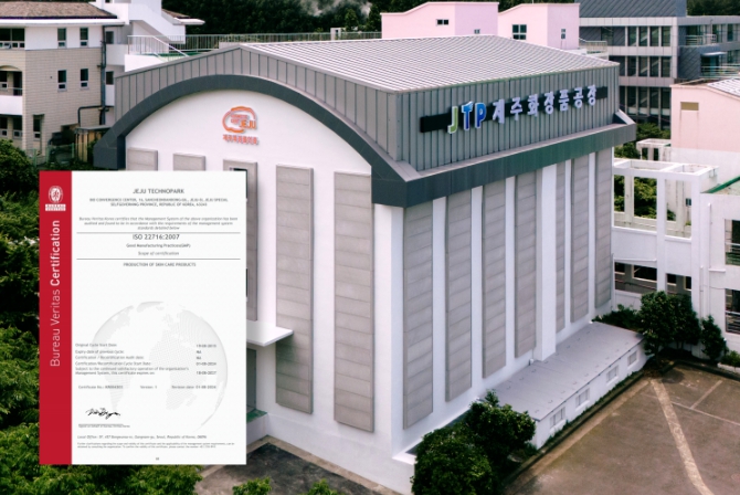 ▲ 제주화장품공장 및 ISO-22716 인증서 |
