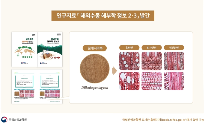 이에 국립산림과학원은 『해외수종 해부학 정보』를 산림과학속보로 연속 발간하고, 적극행정의 일환으로 국립산림과학원 도서관 홈페이지에 대국민 서비스로 공개했다.