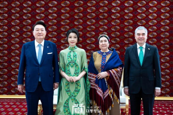 [뉴스서울] 김건희 여사는 오늘(현지시각 6. 11, 화) 오전 윤석열 대통령 부부와 '구르반굴리 베르디무하메도프(Gurbanguly Berdimuhamedov)' 최고지도자 겸 인민이사회 의장 부부의 오찬 전, 최고지도자 배우자인 '오굴게렉 베르디무하메도바(Ogulgerek Berdimuhamedova)' 여사와 별도 친교 시간을 갖고, 양국 문화에 대해 폭넓은 대화를 나눴다. 동 자리는 베르디무하메도바 여사가 김 여사의 방문을 환영하고자 특별히 요청해 이뤄졌다.