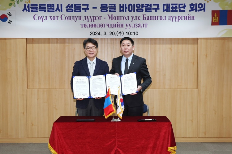 [뉴스서울] 서울 성동구는 국외 자매도시인 몽골 울란바토르시 바이양걸구 대표단이 지난달 19일부터 4일 간 성동구를 공식 방문했다고 밝혔다.