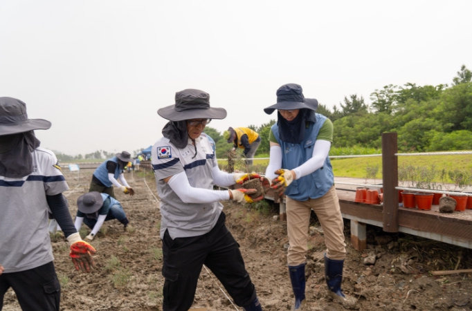 ▲ 중부해경청은 지난 2023년 6월 인천 영종도 씨사이드파크 갯벌에서 협약체결기관과 염생식물 모종이식 행사를 가졌다 |