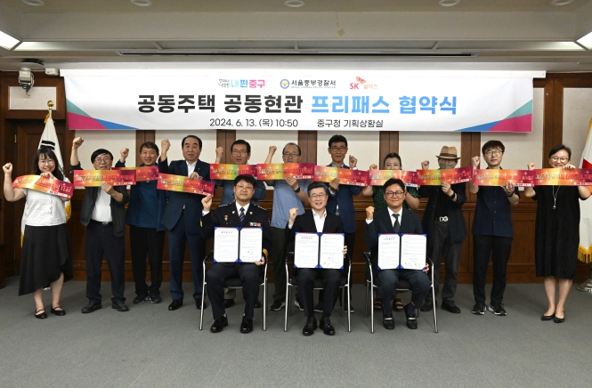[뉴스서울] 서울 중구가 지난 4월 최초로 도입한 ‘공동주택 공동현관 프리패스’가 전국으로 확대되는 방안이 추진 중인 가운데, 구는 지난 13일 중부경찰서 및 SK쉴더스와 사업의 원활한 추진과 견고한 협력체계를 구축하기 위한 협약을 체결했다.