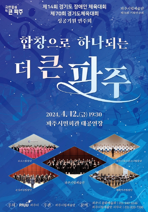 [뉴스서울] 파주시는 오는 12일 시민회관 대공연장에서 제14회 경기도장애인체육대회, 제70회 경기도체육대회의 성공을 기원하는 연주회를 개최한다.