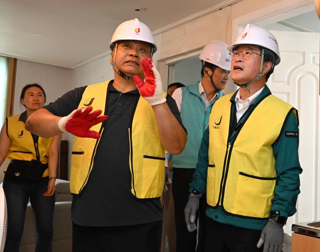 ▲ 집수리 현장에서 설명을 듣고 있는 김길성 중구청장 |