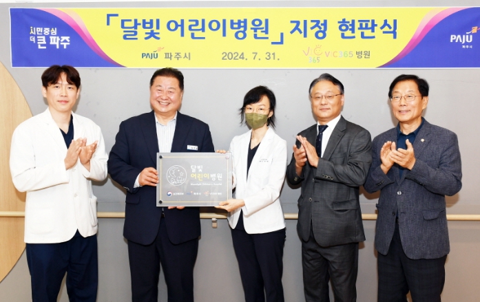 [뉴스서울] 파주시는 31일 브이아이씨365병원이 달빛어린이병원으로 지정된 것을 기념하는 현판식을 개최했다. 이날 현판식에는 김경일 파주시장, 신윤혜 브이아이씨365병원장 등 10여 명이 참석했다.