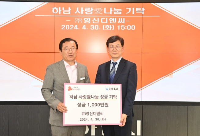 이현재 하남시장은 “꾸준한 나눔을 통해 사랑을 실천하는 ㈜영신디엔씨 덕분에 하남시가 한층 더 풍요로워졌다”고 감사인사를 전했다.